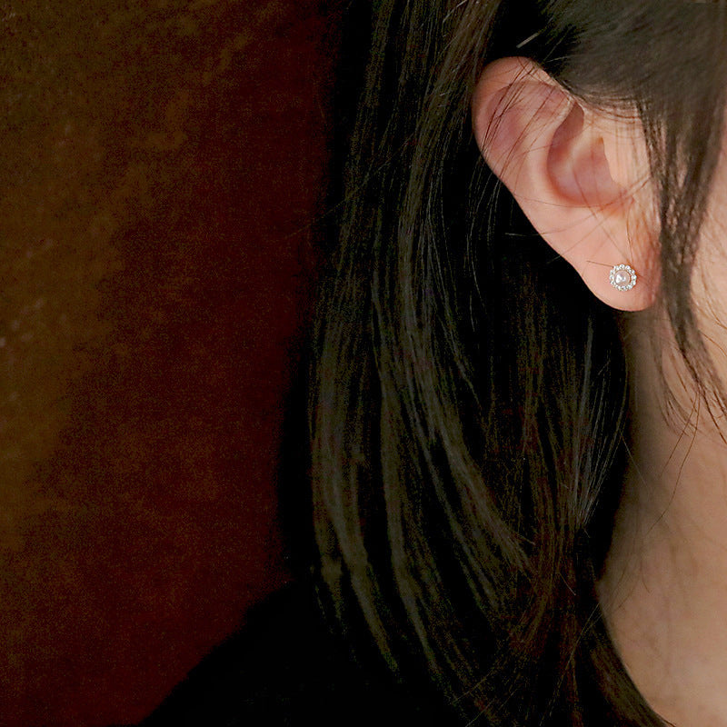 S925 Silver Plated 14k Gold Pearl Shell Zircon Sterling Silver Earrings