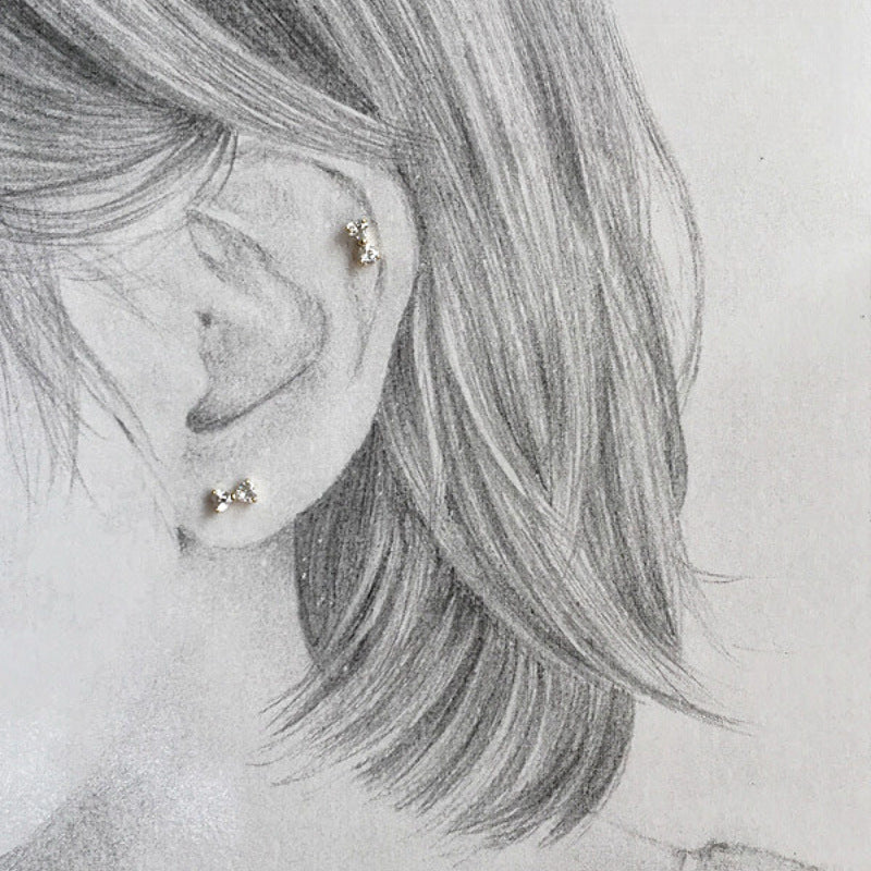 These mini artistic earrings are crafted from S925 sterling silver and plated in 14K gold, showcasing a unique design that blends creativity with elegance. Their refined craftsmanship makes them a sophisticated accessory perfect for adding a subtle artistic touch to any ensemble.