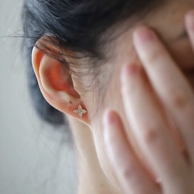 S925 Sterling Silver Plated 14K Gold Earrings Flower Micro Inlaid Zirconia Diamond Niche Design Earrings