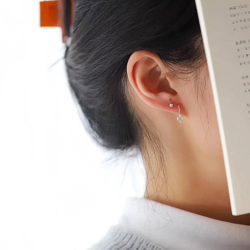 S925 Sterling Silver Plated 14K Gold Four Diamond Rhombus Stud Earrings