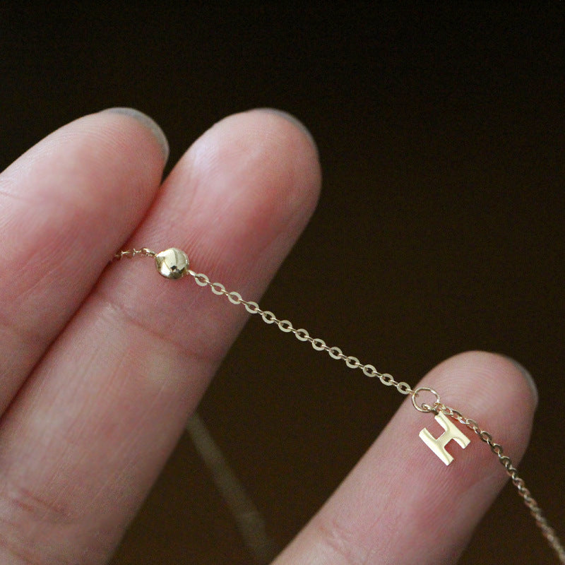 This refined bracelet features an H-shaped charm crafted from S925 sterling silver and plated in 14K gold, delicately accented with a small diamond. Its minimalist design exudes understated elegance, making it a sophisticated piece perfect for daily wear or special occasions.