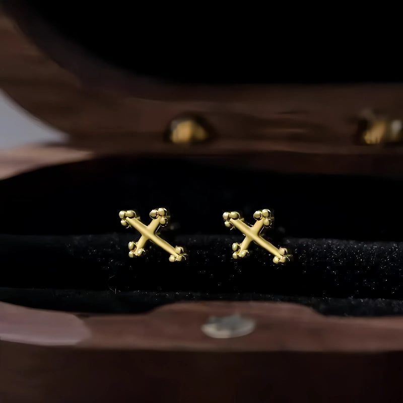 These unisex mini cross earrings are crafted from S925 sterling silver and elegantly plated in 14K gold. Their sleek, personalized design combines modern trendiness with timeless symbolism, offering a subtle yet refined accessory suitable for any style. Perfect for daily wear, they add a sophisticated touch to your look.