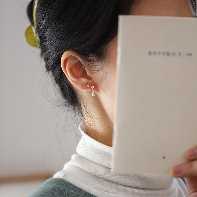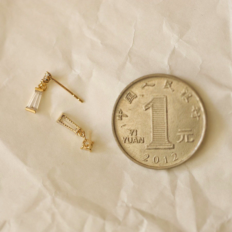S925 Sterling Silver 14K Gold Plated Zircon Trapezoid Earrings