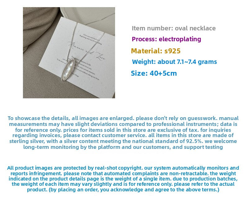 S925 Sterling Silver Korean Version Niche Design White Shell Necklace